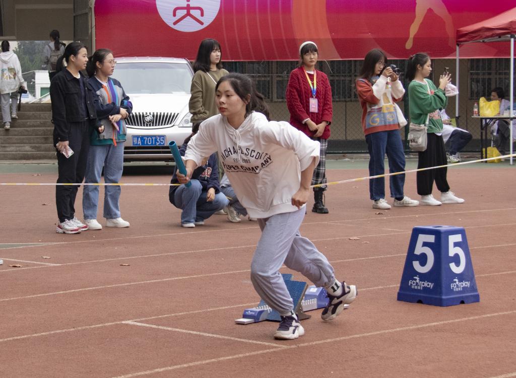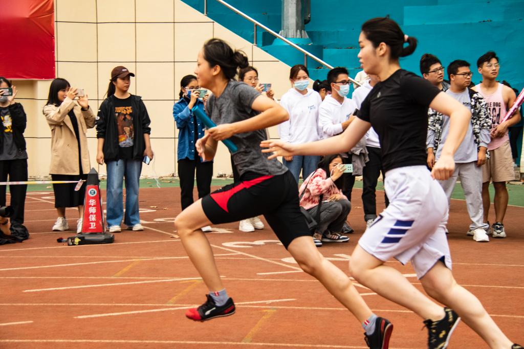 “各就各位,预备——”,口令一发出,第一棒樊艳雅迅速准备,蓄势待发。发令枪响,她立即起跑,与其他赛道的运动员展开了激烈的角逐。此后的第二棒吕颂恩和第三棒许璐涵发挥稳定,牢牢锁住我院在赛道上的领先地位。
