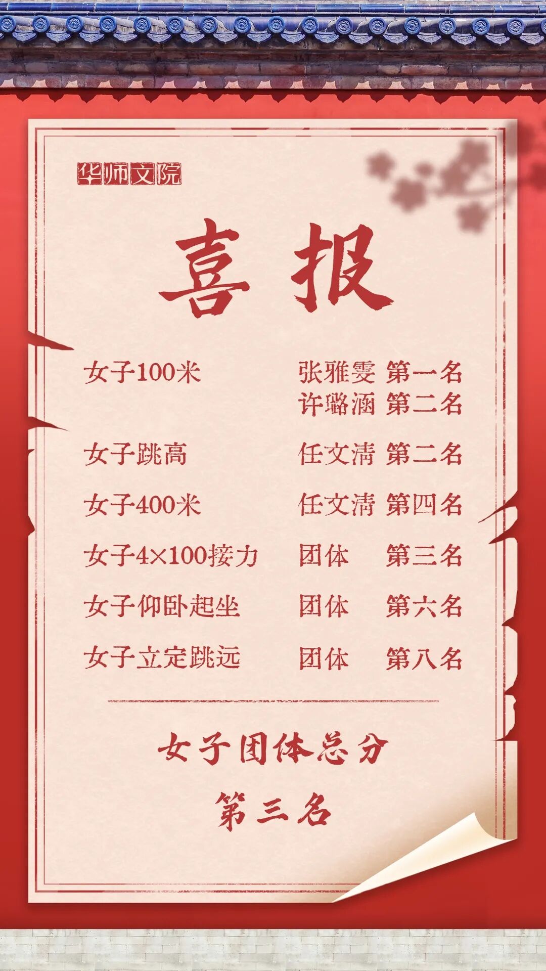 (通讯员 张月莹 杨淑敏)11月6日下午三点半,华中师范大学运动会于佑铭体育场迎来了闭幕式。我院女子团体在运动会中表现不凡,总分荣获全校第三名。