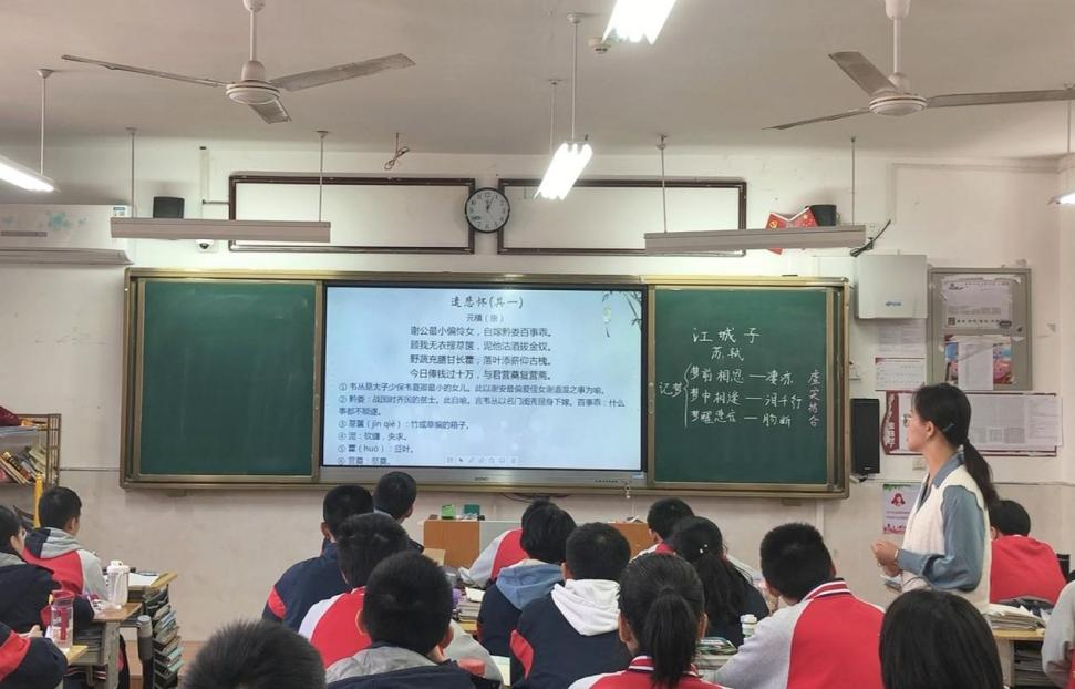 宜昌一中实习小组的三位实习生完成了她们的第一次新课讲授。吴晓彤和殷凝讲授苏轼的《江城子·乙卯正月二十日夜记梦》,在小组共同备课的时候,两位实习生经过讨论,设计了群文阅读,以悼亡诗词为主题,将《江城子》、元稹的《遣悲怀·其一》和贺铸的《半死桐》中的“生活场景描写”进行对比阅读。课后,宜昌一中实习小组进行了小组内评课活动,收获颇丰。