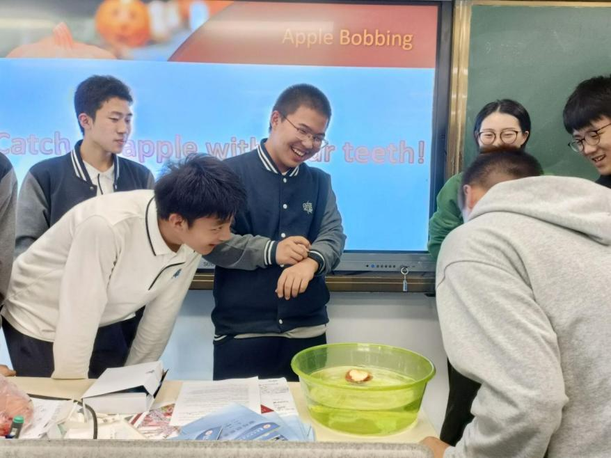 沈馨雅介绍了在上海市复旦大学附属中学高一一班的班会课上组织的万圣节活动。首先以一组Halloween Quiz开始,分享了有关万圣节的各类趣味知识;接着是咬苹果游戏:准备一袋洗净的苹果,在装满水的水盆中放入一个,每组派出一位同学,把手背在身后用牙咬起苹果,用时最短者胜利;最后,发放万圣节糖果给同学们。学生踊跃参与,课堂充满欢声笑语。