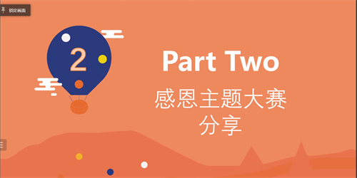 接着是感恩主题大赛分享,本次大赛共有征文、摄影和视频三个类别。征文比赛中,2021级投稿共177份。摄影大赛的优秀作品分享了蒋杨钥、丁佳丽、符娴、黄俊语、林杉、代佳昕、余嘉琪和林嘉琪的作品。在介绍视频大赛优秀作品的过程中,邀请了翟美婷、马丹、任欣玲、王适、来佳宁、于清屹等同学分享自制视频的感想,以及想对老师说的话。