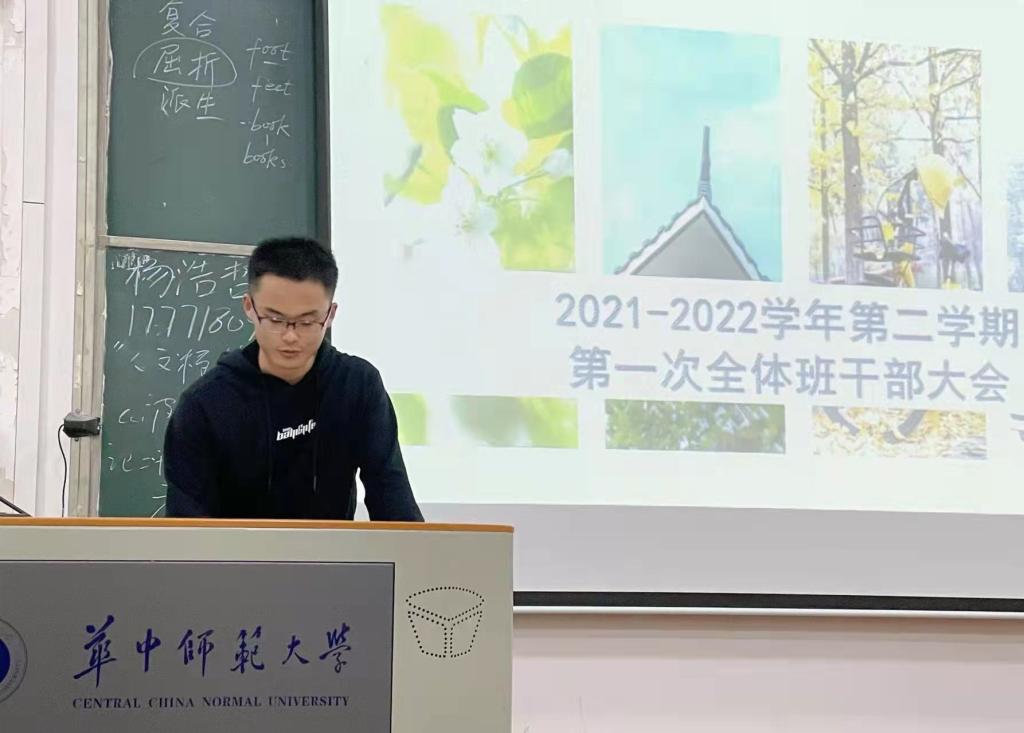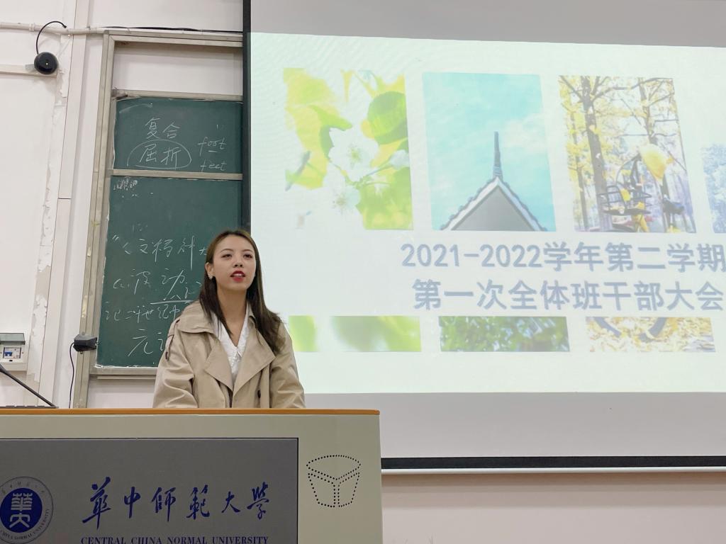 (通讯员 林嘉琪 于清屹 来佳宁 曾湘婷 胡晓娴)3月10日中午,文学院2021级2021—2022学年第二学期第一次全体班干部大会于文学院2201教室顺利举行。本次会议由21级团委、学生会主办,年级主席曾湘婷主持,辅导员杨浩哲、舒佳欣主讲,全体班干部参加。本次会议总结过去,展望未来,旨在增强全体班干部的工作意识,提升工作水平,从而加强班干部团体建设,打造特色班级建设的强力引擎,助推年级工作迈上新一台阶。