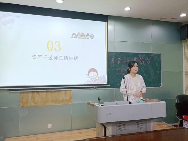 最后,陈若千进行了总结讲话。陈若千分享了自己的支教经历,鼓励大家积极看待专业学习中的困难与挑战,学会换位思考,早日成为“有理想信念、有道德情操、有扎实学识、有仁爱之心”的“四有”好老师。