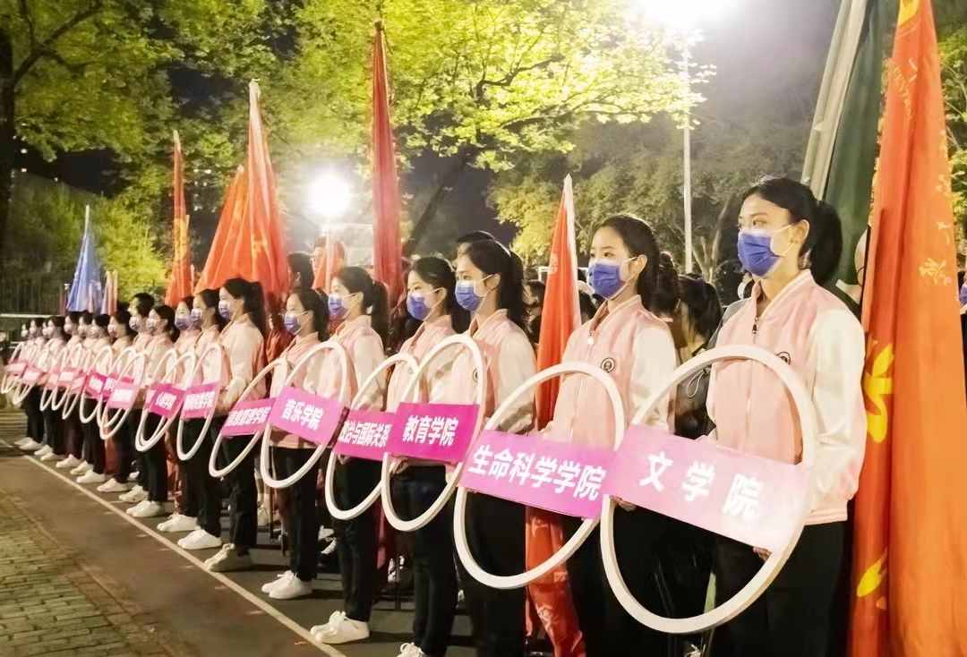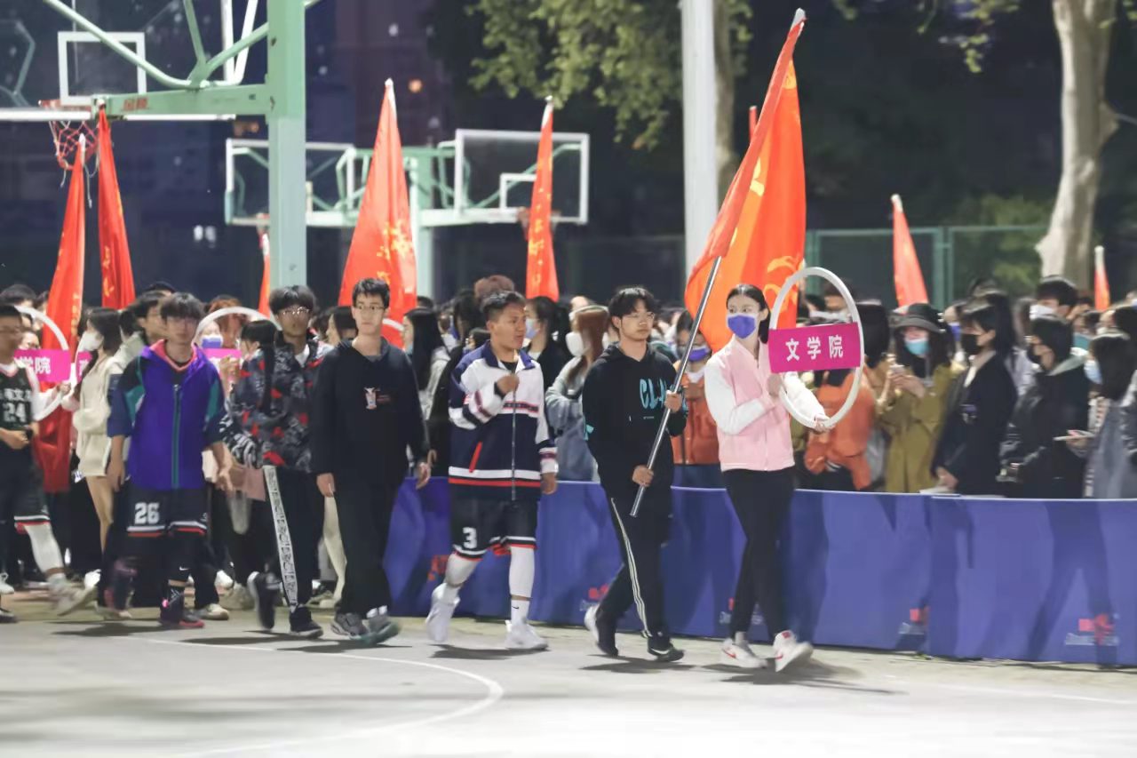 开幕式在观众的热烈掌声中拉开了帷幕。各学院参赛队及裁判队依次入场。顺着礼仪队队员的指引,来自文学院、新闻传播学院、教育学院等24个学院共48支队伍迈着铿锵有力的步伐步入比赛场地。本次“文华杯”篮球联赛参赛队分为26支男子篮球队和22支女子篮球队,其中有教职工队伍2支。