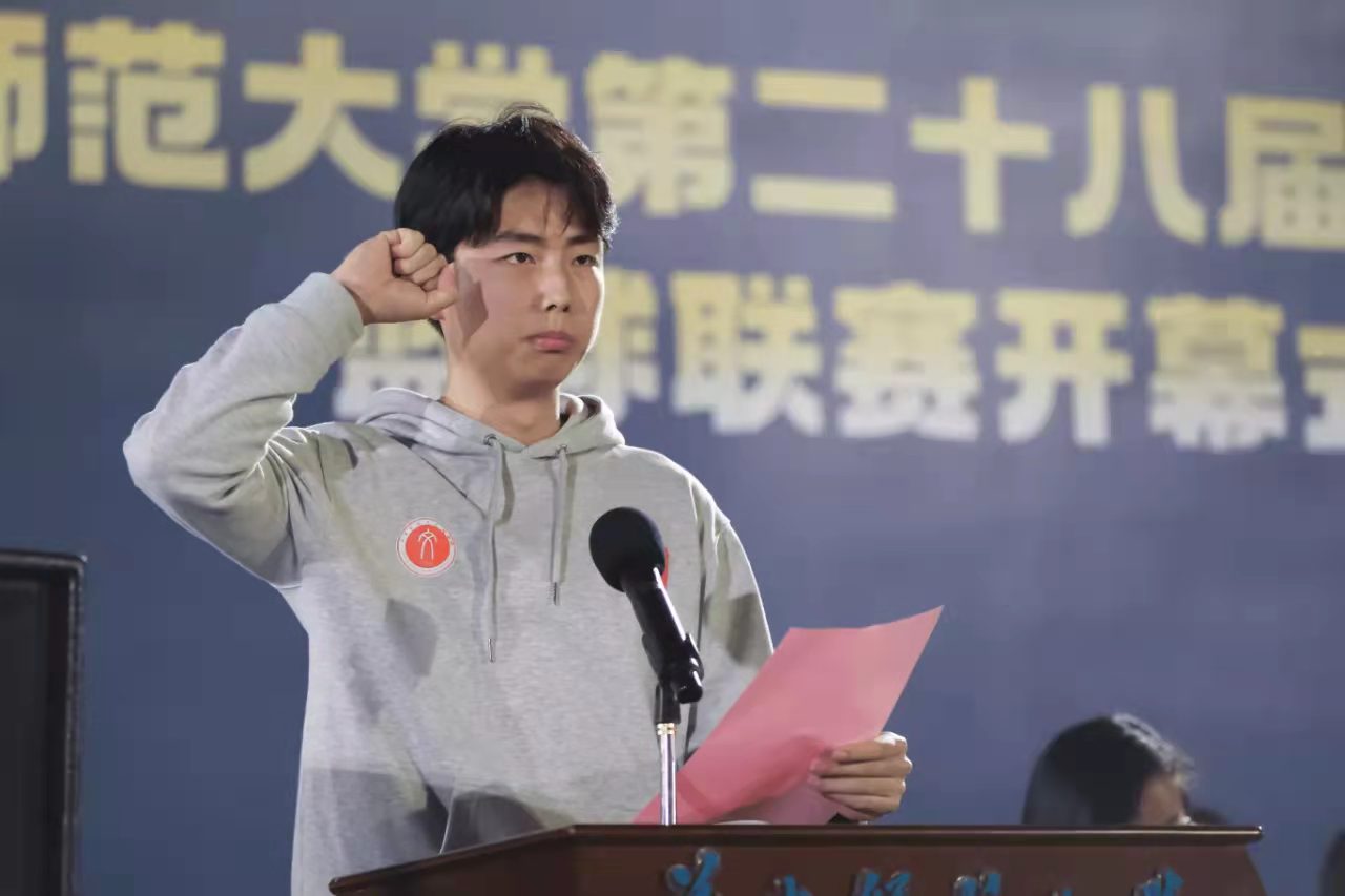 入场仪式结束,全体成员奏唱国歌。奏唱结束,体育学院党委书记杨青松、文学院党委书记朱庆海为开幕式致辞。他们说道,“文华杯”篮球联赛是华中师范大学最有影响的体育赛事之一。举办“文华杯”也是文学院响应国家素质教育,落实“五育并举”,促进学生全面发展的重要举措。“希望全体运动员发扬‘更快、更高、更强’和‘团结、友谊、进步’的奥林匹克精神;希望全体裁判员、工作人员树立‘安全第一、热情服务、客观公正’的意识,共同促进比赛的顺利进行。”致辞结束,运动员代表施轩尧,裁判员代表金虹杉上台宣誓。宣誓结束后,校常委党委、副校长彭双阶宣布:“华中师范大学第二十八届‘文华杯’篮球联赛开幕!”