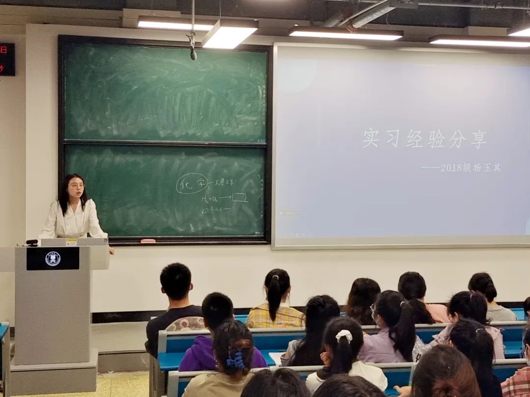 本次分享会特邀文学院2018级优秀公费师范生杨玉其担任主讲人,以“实习经验分享”为主题与同学们深入交流。此次主题分享会旨在增进师范生对于实习、见习、研习的了解,推动师范生结合实习实际需要开展日常学习,提升师范生的就业竞争力与社会适应能力。