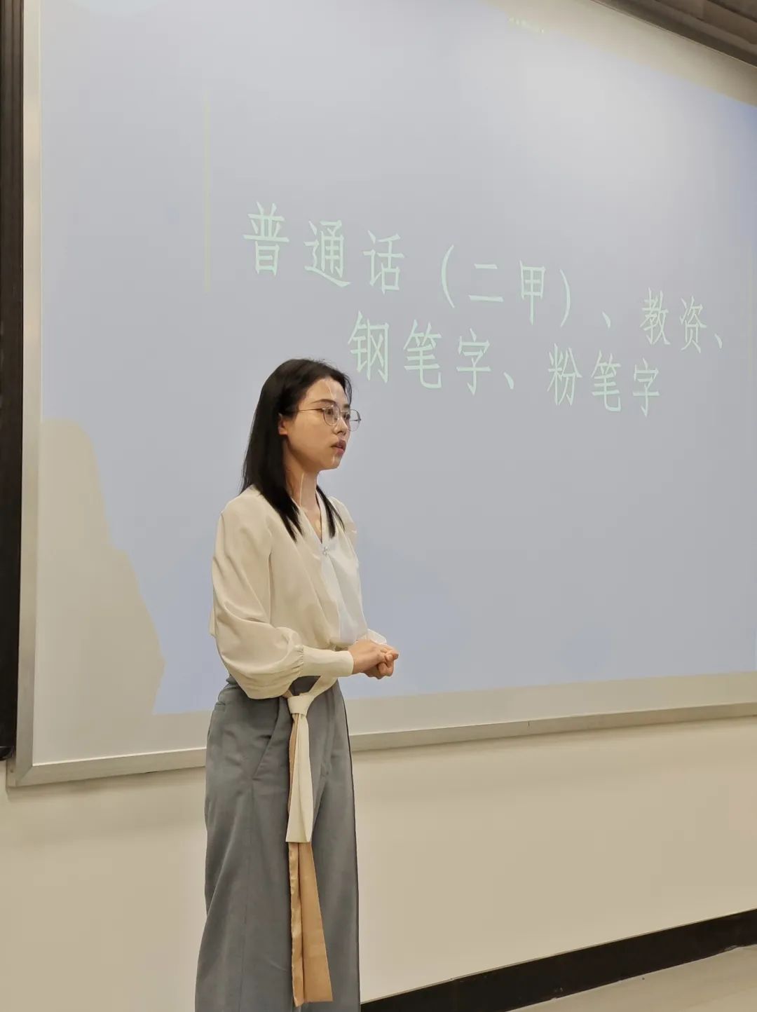 杨玉其对前几期分享的“普通话考试”“考取教师资格证”等相关内容做了补充,在此基础上她指出,当下的社会竞争激烈,师范生不仅要积极做好自己分内的事情、展现自己的能力,更要在大学学习中不断提升自身的技能水平、进一步完善自身不足。她通过分享自己的实习经历,告诉同学们在外实习是一个难得且宝贵的助力器,是一个让自己不断提升、成长的强劲引擎,要把握住实习的机会,多锻炼自己,提高表达能力,培养个人气质。