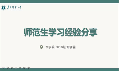(通讯员 杨淑敏)5月13日晚,由华中师范大学教育学院和未来教育家联盟主办、文学院师范生训测部承办的师范生技能经验分享文化沙龙在线上举办。本次文化沙龙邀请了文学院18级本科生谢晓雯、乐华彬、谷雨竹和张吉平对有关于师范生职业规划的问题进行分享,旨在交流经验,答疑解惑。