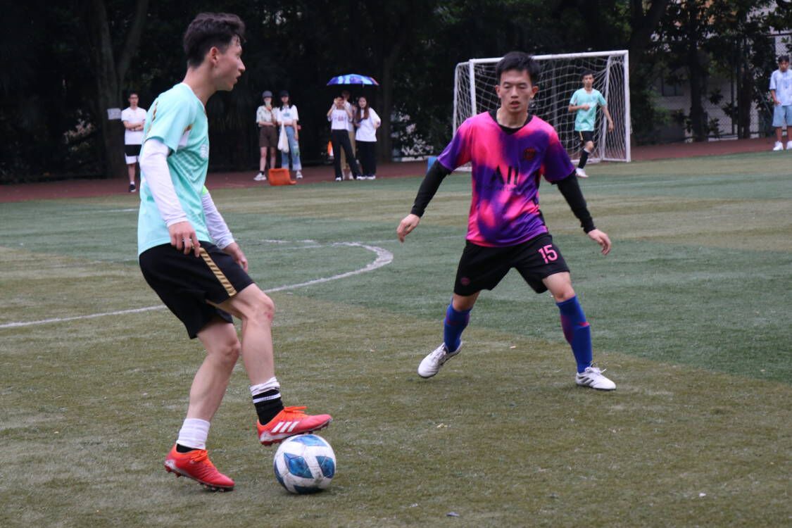 下半场交换场地,双方队员调整状态,观众喝彩不断。第32分钟,生科院率先发起攻势,后场打出直塞球,生科院前锋获得一个单刀机会,文院门将61号施轩尧及时扑救,化解危机。文院球员不甘示弱,时刻准备抓住机会。第47分钟,文院21号何强领球突破后将球传给队友,文院10号车永润顺势一记远射,可惜足球稍稍高出横梁,偏出球门。赛场上逐渐飘雨,双方球员仍拼尽全力,观众们也呼声不断,现场气氛异常热烈。双方久战不下,常规时间以0:0平局收场。