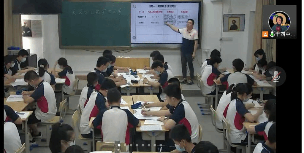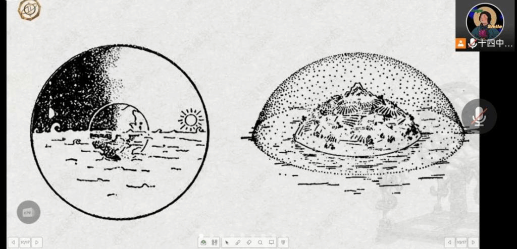 首先,十四中张启帆老师讲授了公开课《天文学上的旷世之争》。张老师从2020年山东高考卷第五题和《春江花月夜》的诗句引入,随后布置学生用五个环节的驱动任务来完成课文的论证结构梳理,以思维导图的方式概括课文中提到的各派学说、代表人物、基本观点和历史贡献。尤其对重点段落“浑盖之争”,教师引导学生在了解基础上对比辨析两种主要学说,并动手绘图、分享展示,理解“论争”的过程和本质,课堂气氛活泼高效。张老师的授课条理清晰,随时对学生活动进行指导和点评,提点绘制思维导图的注意事项。最终以回到高考真题,总结阅读信息类文本的方法圆满完成了课程教学任务。
