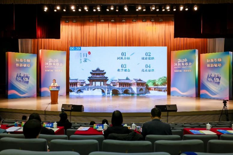 此次总交流活动历时两天,包含说课交流等多个环节。各参赛院校团队按照抽签顺序依次登台,进行教学成果的展示与交流。在说课展示环节,黄濒娴代表团队条理清晰地介绍了团队教学设计的主题、具体内容及采用的教学方法。通过播放教学案例视频,生动展示了如何使用5E教学法引导学习者从桥梁的演变历程及其蕴含的文化内涵中,深入理解和感知中国国情与文化的独特魅力。周滢代表团队与在场的专家评委进行了深入的互动交流,进一步阐释了课程设计中促进留学生实现知识与技能有效迁移的教学策略。我院团队的精彩展示,充分展现了我校在国际中文教育文化教学课程设计方面的创新思维与实践成果,赢得了专家评委的高度评价与一致认可。