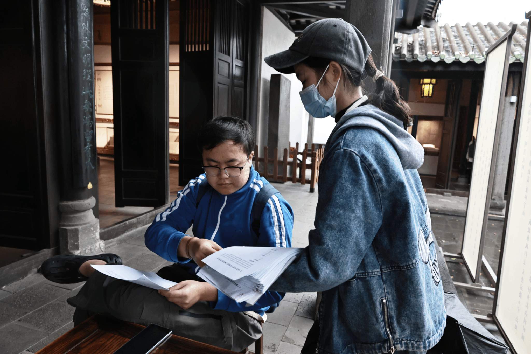 图 3 实践队成员与工作人员访谈