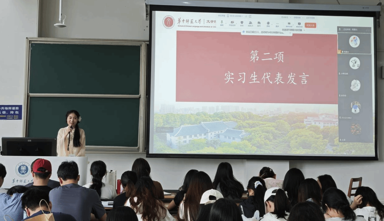 会议伊始,陈蓓副院长作实习动员讲话。她强调了实习流程和时间安排,希望实习生们能够迅速转换角色,在实习过程中多向一线老师请教问题,以饱满的热情和积极的态度投入到实习工作中,提升教学技能,展现华师文院学子的风采。