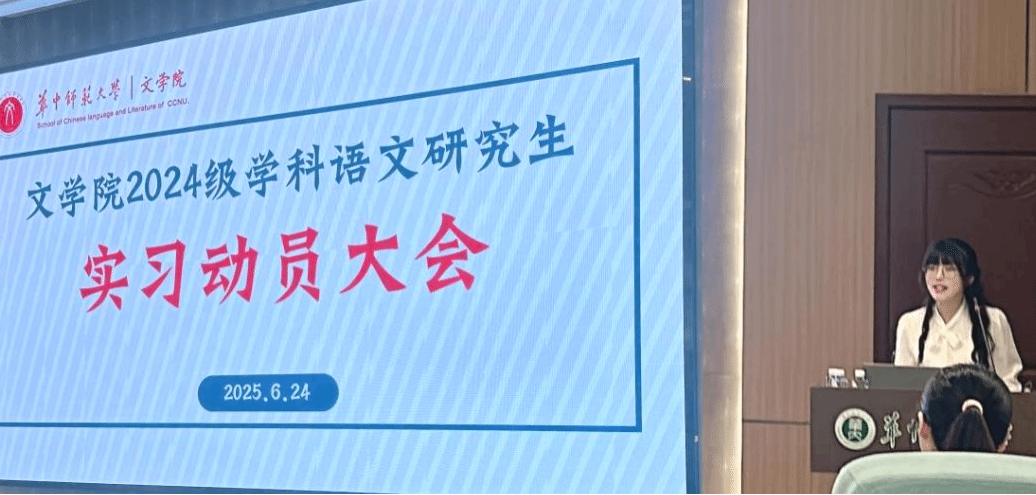 文学院讯(通讯员 胡思怡)6月24日,文学院2024级学科语文研究生实习动员大会在文学院一楼报告厅举行。文学院副院长吴述桥,实习指导老师张筱南、黄凯,辅导员汪青以及2024级学科教学(语文)专业全体研究生参加了此次大会。
