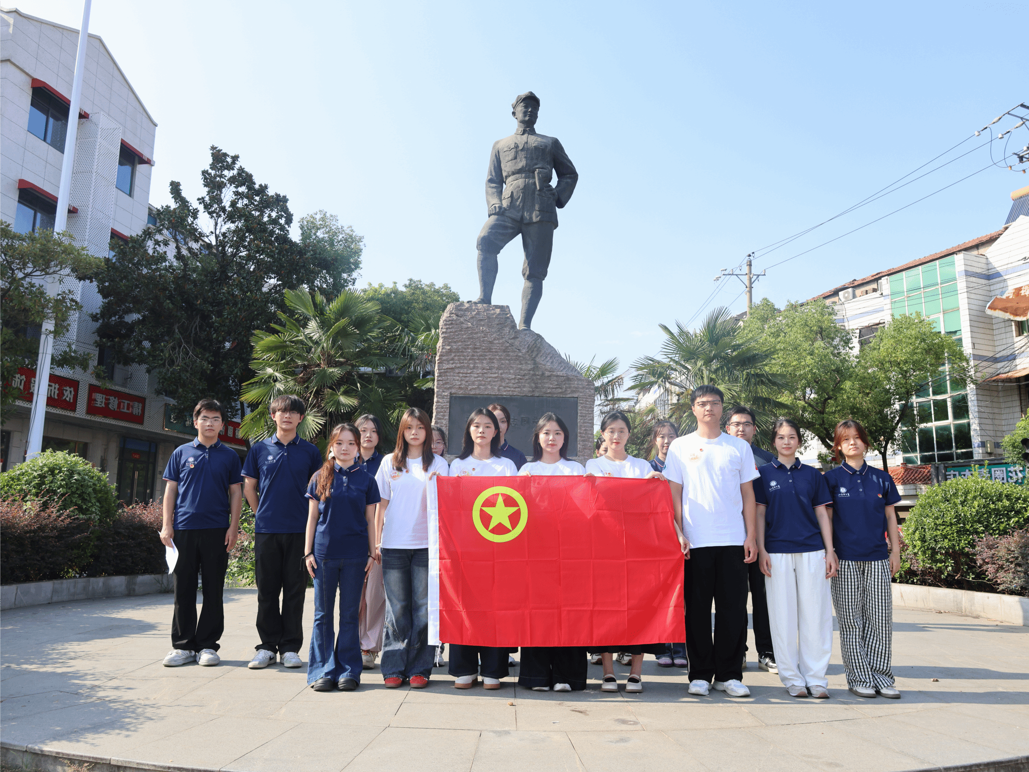 怀着无比崇敬的心情,全体团员在鲜红的团旗下,高举右拳,重温入团誓词。“我志愿加入中国共产主义青年团……”铿锵有力的誓言在雕塑上空回荡,彰显着新时代青年继承革命先辈遗志、践行“强国有我”的坚定信念。