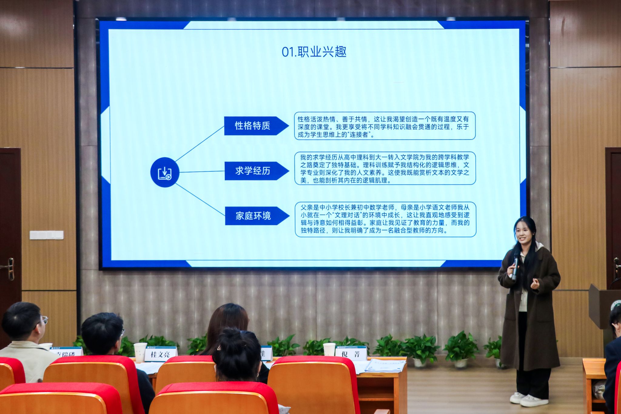 就业赛道的选手们深入了解行业信息,职业目标明确,涵盖中学语文教学、高校学生工作等多个方向。从短期实习到长期职业目标,他们带着完整的职业发展规划,将自己丰富的实践经验一一呈现,评委老师就选手们的未来发展、就业潜力等进行了细致指导。