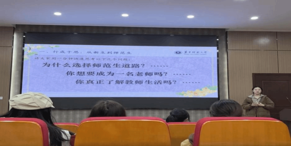 (通讯员 舒爽 宋永博)11月19日晚,由共青团华中师范大学文学院团委会举办、文学院团委学生会学术创新中心承办的2025年新生分享会于文学院一楼报告厅举行。2023级文学院本科生杨思远、陈鑫颖受邀主讲公师场,谭可言、林诗洋受邀主讲非师场。文学院团委学生会学术创新中心干事倪美婷主持分享会,2025级新生到场参与。