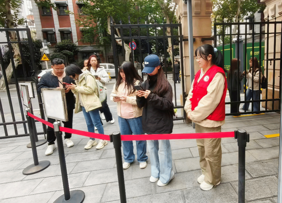 在常态化的志愿服务活动中,文心服务队的志愿者们有序开展基础服务。在导览类志愿服务中,他们引导观众完成门票验证,协助现场预约操作,精准解决扫码过程中的各类问题。志愿者耐心回应年长者的技术操作难题与儿童参观疑问,确保入馆流程高效顺畅。这些站在第一道关口的年轻身影,让这段通往革命历史深处的初体验,充满了人文关怀的温度。