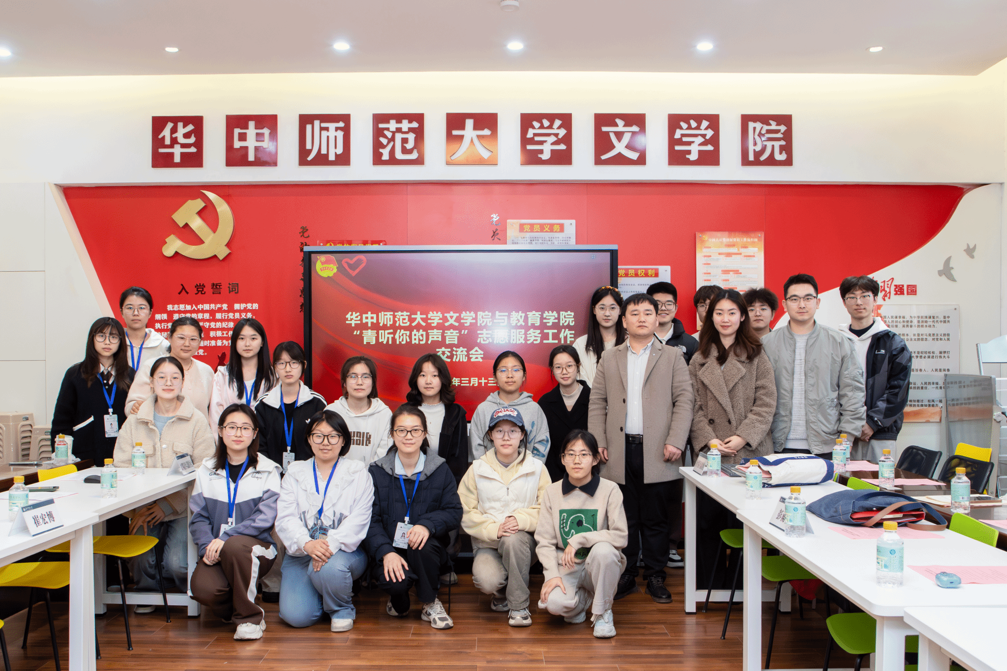 (通讯员:耿嘉彤 苏鑫雨 李雪琴 赵庆元)为深化志愿服务协同发展,搭建跨学院交流学习平台,3月13日下午,华中师范大学文学院青年志愿者协会(以下简称“文院青协”)与教育学院青年志愿者协会(以下简称“教院青协”)于文学院106党员活动室共同举办“青听你的声音”志愿服务工作交流会。文学院团委书记崔宏博、文学院团委副书记周旺章、教育学院团委副书记彭雨茜以及文院青协与教院青协全体成员参加本次会议。