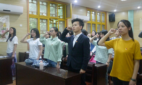 大会伊始,主持人带领新团员与团员代表宣读入团誓词,团员代表重温了“四讲四有”的精神内涵,并学习了习近平总书记在中国政法大学讲话摘要。之后,大家共同观看了“习近平总书记在中国政法大学的讲话”相关视频。习近平总书记在考察时指出青年一代的综合素质等是国家发展活力的重要体现,也是国家核心竞争力的重要因素。他强调应“立德树人、德法兼修;励志勤学、刻苦磨炼”,使青年人在成长与奋斗中雕琢自我,培育高尚情操,给学子以恳切鼓励。