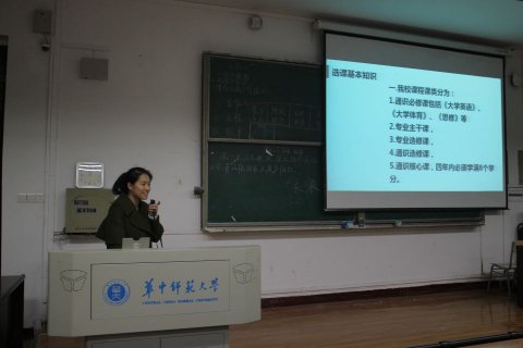 紧接着,于思源为大家讲解了选课的相关知识。她首先为大家介绍了选课的基本知识,包括我校课程分类,课程编号以及不同类型课程的学分不可以相互代替,跨专业选课尽量避免同年级的别院专业课程、通识选修课,不要选本院开设的课程等。随后,她围绕选课注意事项进行了多方面的解释。她强调,其他专业学生不可以选修音乐、美术、体育、外国语学院开设的专业课程;选课会经历初选、筛选、改选和开学改选四个阶段,她提醒大家根据自身实际情况选择课程,避开选课高峰期,充分考虑相邻课程的上课时间和地点,做好每学期选课记录,做到不重复,不遗漏。同时她以自身经历为例,建议大家多方面考虑选择,做好未选上课的预防措施,对于难以解决的问题及时与本年级学习部长和教学秘书进行沟通。