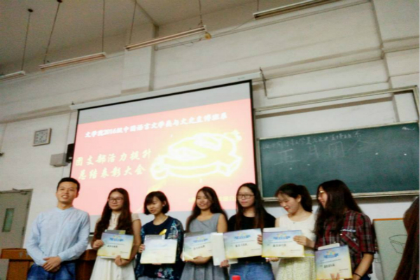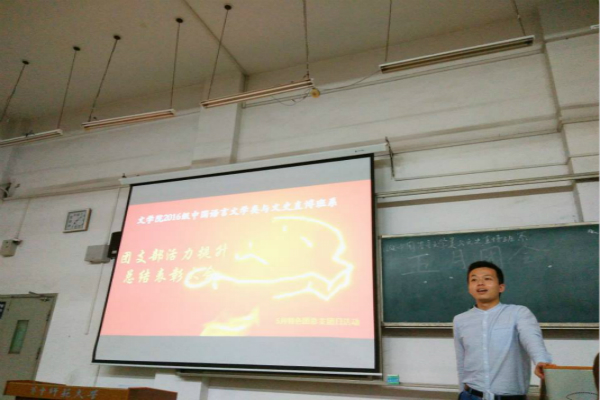 (通讯员:宓嘉祥 文金鹏)2018年5月20日晚6点,文学院2016级中国语言文学类与文史直博班系团总支在八号楼8101教室举办了5月特色团总支团日活动,此次活动旨在对过去一学期各班的团支部工作进行总结并对其中的优秀典型进行表彰,彰显支部活力,增进支部同学的团结。活动由年级团总支书记宋时雨主持。