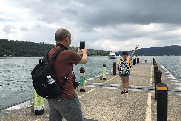 交流团首先来到位于南投县鱼池乡的天然湖泊日月潭。通过当地导游周宗信的讲解,团队成员了解到日月潭因以光华岛为界,北半湖形状如圆日,南半湖形状如弯月,故称日月潭;风景区主要景点有拉鲁岛、猫囒山、慈恩塔、玄光寺等。团队成员乘坐游船,切实欣赏了环绕湖泊的青山秀水,并来到了离潭只有10多米处的玄光寺。周宗信为成员介绍了玄光寺的历史文化,并特别谈到:“玄光寺建筑风格有着唐代寺庙的痕迹,曾因存放玄奘法师的部分顶骨舍利成为游访的必经之处。”成员们驻足观看,大家在观看中,询问导游和当地人,进一步了解到两岸历史文化的一脉相承。参观过程中,全队成员积极向相关专业人员发问,对日月潭的优美风景和悠久文化表现出浓厚的兴趣。最后,导游讲解到日月潭一项重要年度活动—“万人涌渡日月潭”,成员了解到这是一个重要的交流、交友的平台,可以增进人与人之间的距离和感情。