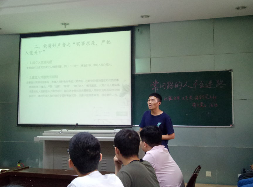 在支部成员们的热切交流中,本次“特色党日”活动圆满落幕。通过此次活动,丰富了支部组织生活,创新了支部组织生活形式,加强了各专业间的学习交流。有效提升了学生党员的党性修养和理论修养,增强了支部成员的学习能力。