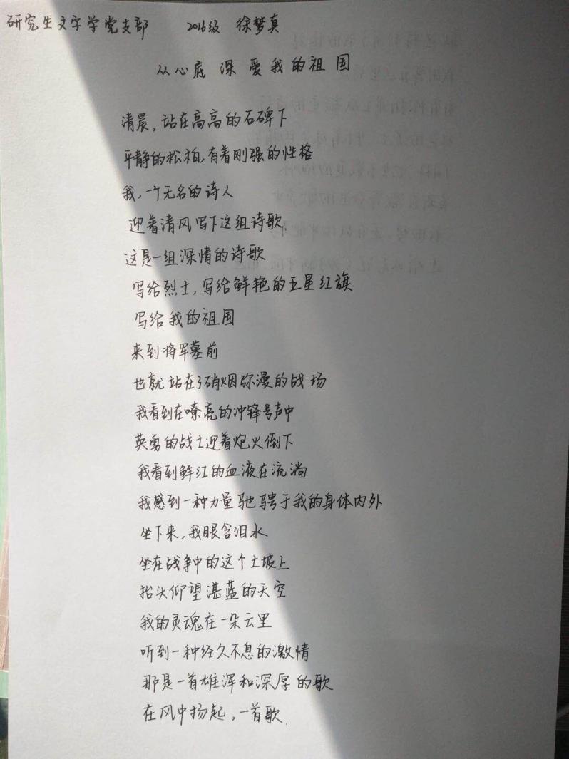 (通讯员:申文雅)为庆祝祖国六十九周年华诞,文字学支部结合支部专业特色,组织支部成员“我手写我心”,围绕“爱党、爱国”主题内容开展“书写文字情,共铸中国魂”的书法竞赛活动,并通过投票评选出优秀的书法作品。