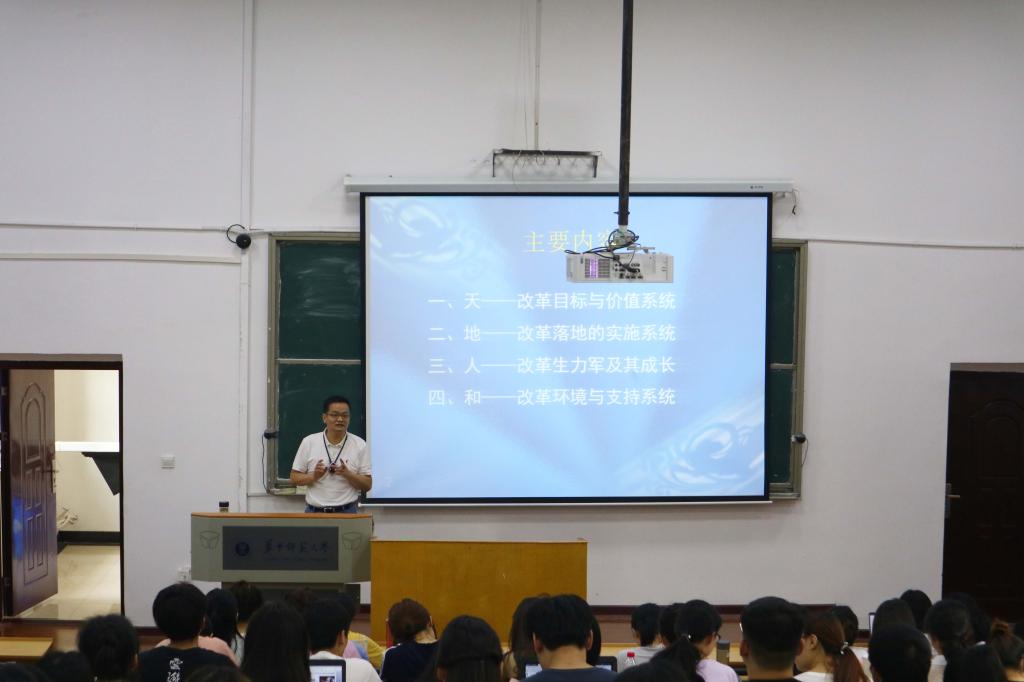 (通讯员:朱莹莹 符雨莹)2019年7月1日下午两点半,2016级师范专业第三学期第一场讲座在2201教室举行。本次讲座邀请到了华中师范大学文学院胡向东教授担任主讲人,2016级全体师范生聆听了此次讲座。