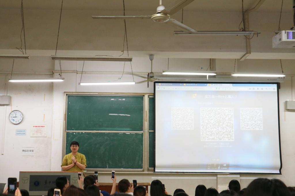 在讲座开始之前,秀玲老师先对同学们对实习的预期情况做了一个小调查。同学们通过扫码说出自己对于即将到来的实习的预想,秀玲老师就同学们的想法进行了分享和点评。秀玲老师提到实习中会遇到各种各样的突发情况,她希望每一个同学都能安全地完成实习任务。