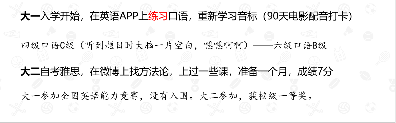 最后关于口试和其他竞赛,张尔承提醒大家带一支笔进考场,有的时候可以记录下关键信息点,以防切的太快了记不住;陈雨昕则主要谈到了逻辑的规范性与语法的地道性。她建议有能力的同学可以选择参加“全国大学生英语能力竞赛”,但是“题量很大,做题速度要过关”,最好是“不要按顺序,应先易后难来作答”。