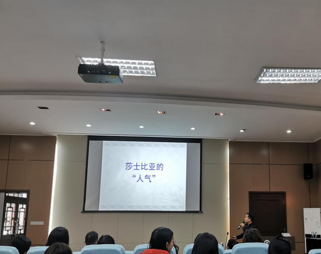 首先提到的是莎士比亚的“人气”。阎伟博士根据自己在英国的骑行经历向同学们展示了作为“普通人”的莎士比亚。他认为,英国人之所以如此尊敬莎士比亚,一方面是因为他的艺术成就,另一方面则是因为莎士比亚在英国人的心目中是一个“人”,优点和缺点并存的一个鲜活的平凡人。而所谓的“人气”则在于莎士比亚塑造的人物反映了人性的方方面面。