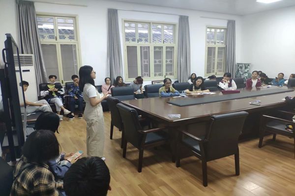 随后,朋辈导学宋时雨简单回忆了自己的本科生涯,简明扼要地介绍了文学院“育人体系”的基本情况,叮嘱同学们要树立目标意识,做好生涯规划,并表示自己愿意为同学们今后的学业发展提供帮助,希望大家共同努力、一起进步。