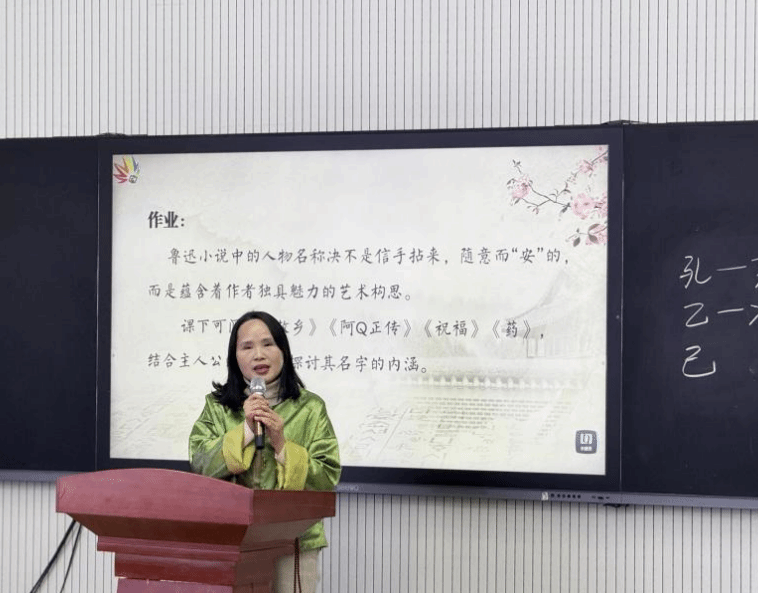 “重构现代经典,提升思辨品质”,活动伊始,丁洁语文名师工作室成员方芳老师向工作室成员及现场观摩的华中师范大学学子展示了一节别具一格、独具创意的展示课《孔乙己》。在这节展示课中,方芳老师以“姓名解码”的方式展开教学,匠心独运。“孔”问文人困境:通过“长衫与站着喝酒”的矛盾聚焦人物悲苦,引导学生发现孔乙己三次问答中“排—摸”“仰面—低声”等细节变化,带学生细嗅鲁迅笔下知识分子的悲苦;“乙”剖看客众生:结合插画分析看客群体的哄笑与冷漠,撕开看客群像的冷漠的社会疮疤;“己”叩时代回响:通过“有一分热发一分光”的鲁迅箴言,反求诸己,引导学生反思当代青年的责任担当。 整堂融合角色扮演、对比阅读等策略,将文本细读与思辨能力培养有机统一。