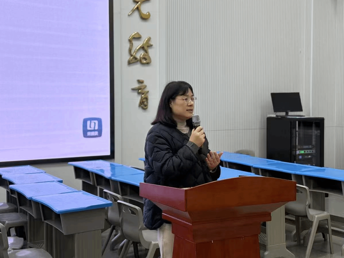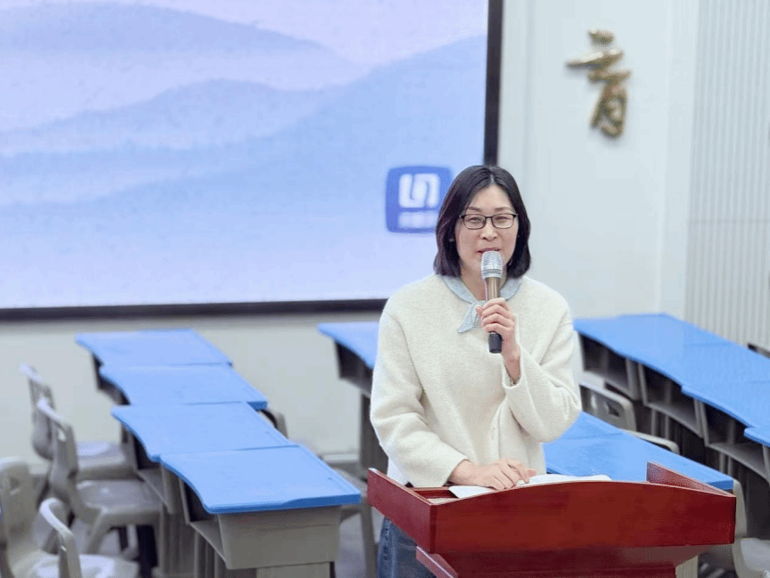 随后,丁洁语文名师工作室主持人、湖北省特级教师丁洁分享工作室语文教育理念。她以 《共生——语文的美好姿态》为标题,用“三共”绘工作室语文教育蓝图,提出“师生共生、跨学科融合、语文与生活联通”的教育理念,倡导构建开放动态的语文生态系统,培养兼具文化底蕴与高阶思维的创新人才。丁洁老师的发言以“活成一道光”的教育情怀收尾,激励工作室成员和华师学子保持教育初心,以“浪漫而具生活气息”的方式深耕语文教学。
