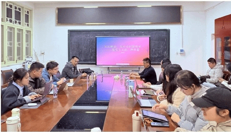 文学院讯(通讯员 申思远 姜欣彤)12月4日,南开大学文学院教授、当代审美文化研究中心主任、天津美学学会会长周志强应邀做客桂子山人文论坛,在华中师范大学文学院文艺学教研室开展以“游戏性现实主义与新大众文艺的现实性”为题的学术讲座。本次讲座由我院黎杨全教授主持,李远副教授、长江大学肖祥副教授以及我院硕博研究生参加。