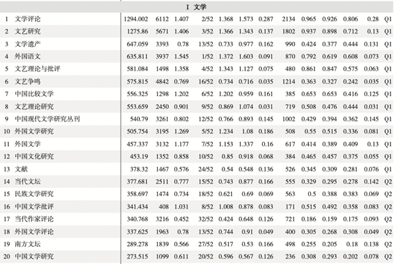 附:2023年《中国学术期刊影响因子年报》文学类期刊综合排名