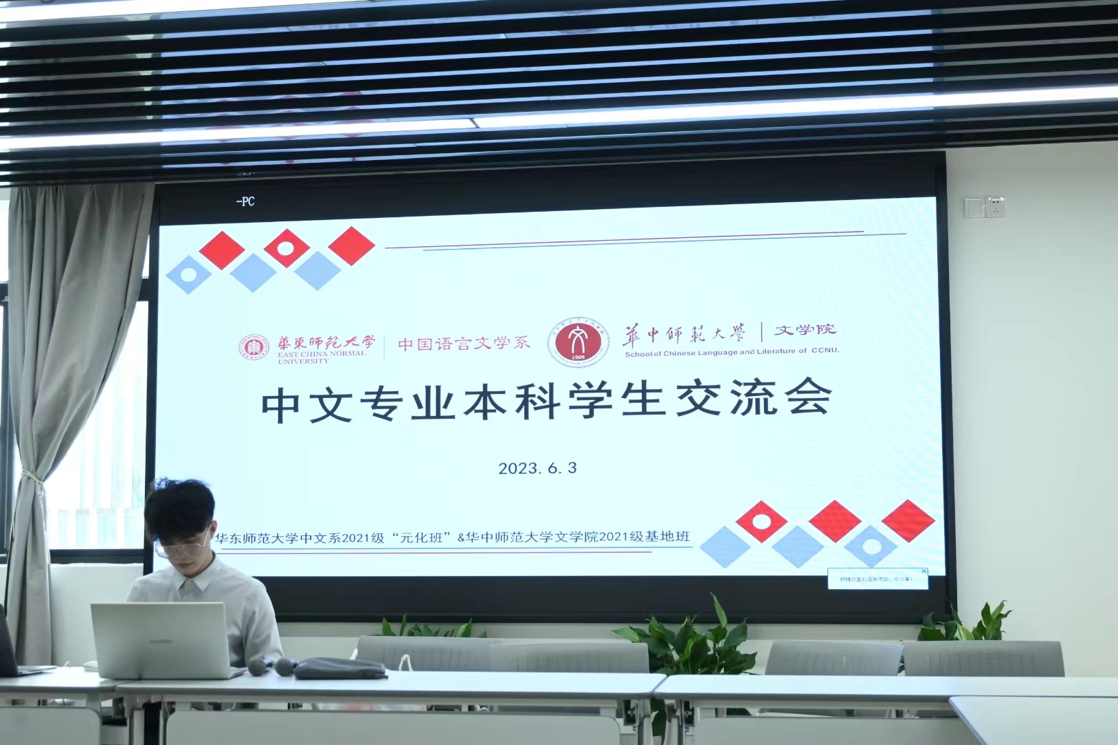 2023年6月3日上午,华东师大——华中师大中文专业本科学生交流会在华东师大文史哲楼4430会议室成功举办。此次活动由华东师范大学中文系和华中师范大学文学院联合举办,华东师大中文系副系主任汤拥华教授、本科教学秘书左媛老师,华中师大文学院2021级基地班班主任苏小露老师、辅导员舒佳欣老师,以及华东师大中文系2021级元化班、强基班和华中师范大学文学院2021级基地班的同学们共同参与,由华东师大中文系2021级元化班班长周玮譞主持。