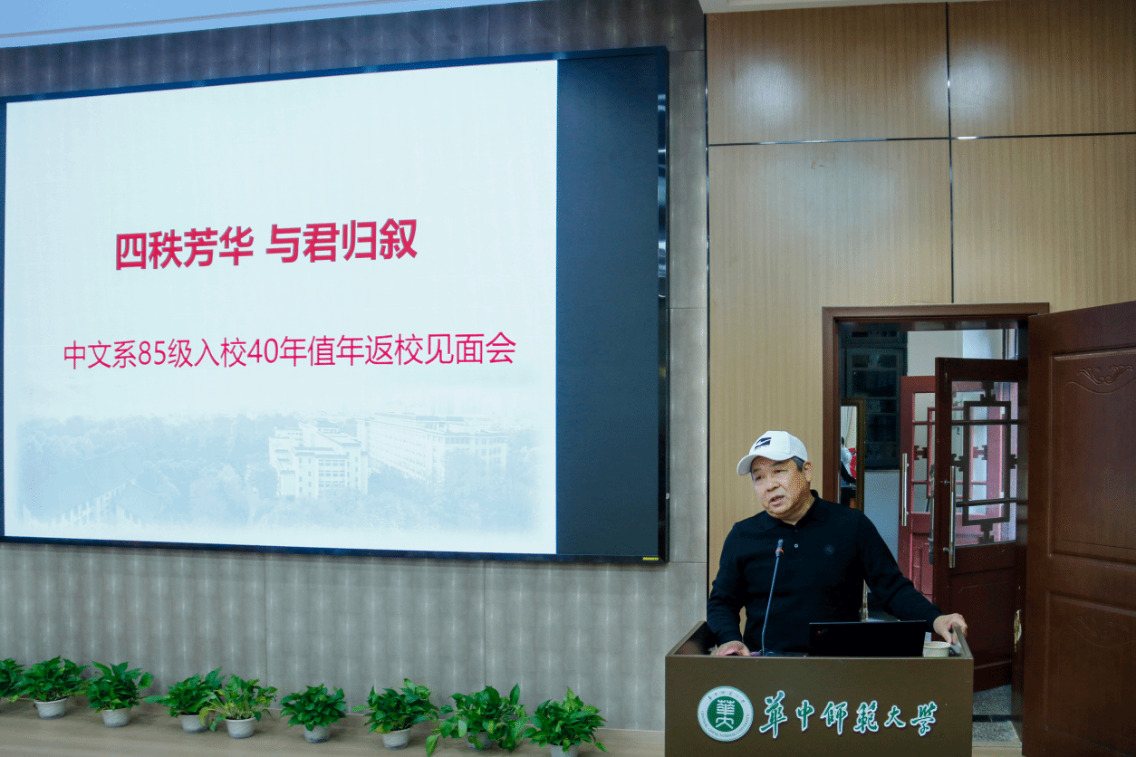 聚会伊始,85级学生、现华中师范大学文学院教授王洪涌向在场校友介绍文学院的发展历程及中国语言文学“一流学科”建设成果,向始终关心和支持学院的校友们致以谢意。