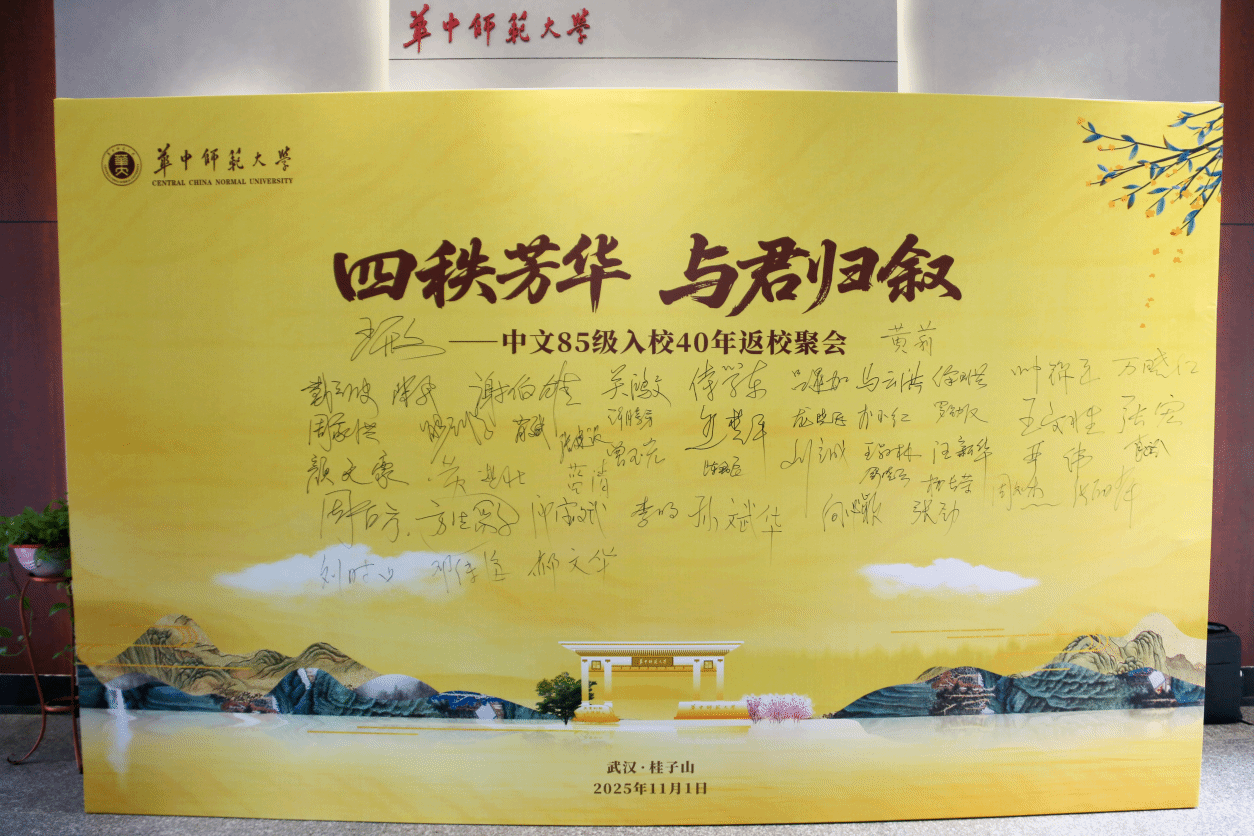 文学院讯(通讯员 吴宛芯 雷滕菲 杨玉玲 唐张子睿)一别桂子山四十秋,今朝重逢,桂香如故,笑语依旧。11月1日,文学院1985级校友从天南地北齐聚母校,在曾经求学的教室与熟悉的草木间,重温青春记忆,共话岁月情深。