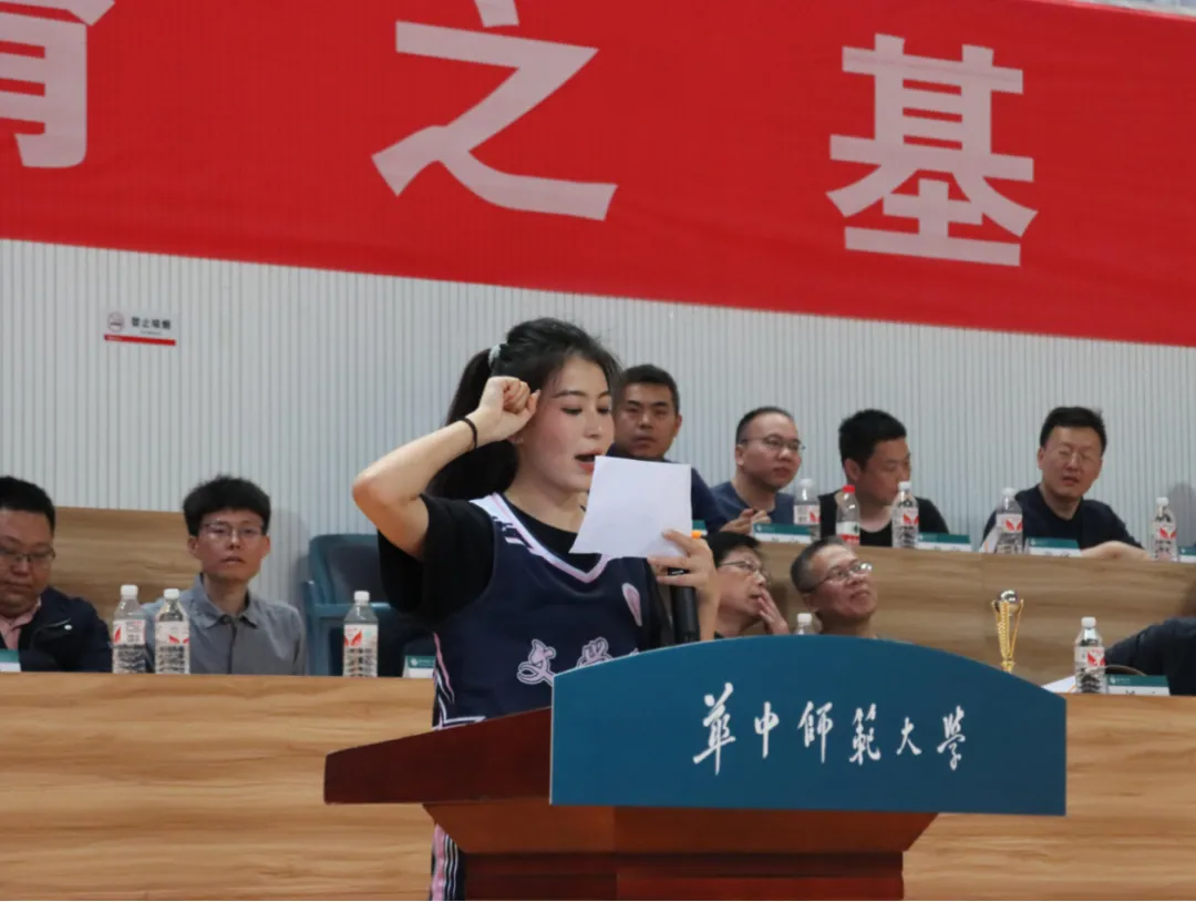 随后,校长彭双阶为荣获“文华杯”篮球联赛特别贡献奖的10位特邀嘉宾颁奖。运动员代表古丽扎达,裁判员代表张倍铭依次上台宣誓。在全场嘉宾、队员和观众的期盼下,校长彭双阶宣布:华中师范大学第三十届“文华杯”篮球联赛隆重开幕!