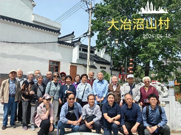 参与此次春游的教师中有14位已达八十高龄,从武汉到大冶有近两个小时的车程,虽年事已高,但一路上放眼窗外景色,谈笑风生,兴致盎然。本次目的地沼山村有4500亩桃林,每逢春天,漫山遍野的桃花、油菜花盛放,美不胜收;加之错落有致的徽派建筑、清澈澄净的山间流水,沼山村也被誉为“湖北小婺源”。