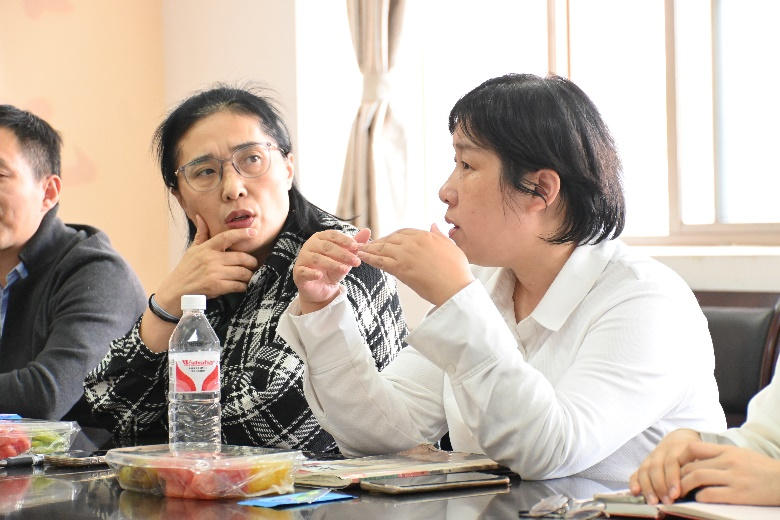 接着,双方就实习生工作表现进行了过程性评价与指导。三位指导老师充分认可了我院师范生人才培养模式,对实习生的专业素养、教师技能给予了肯定。赵燕老师谈到,几位实习生展示了华师文院师范生的良好风貌,为华师一附中的教学工作注入了新鲜血液。