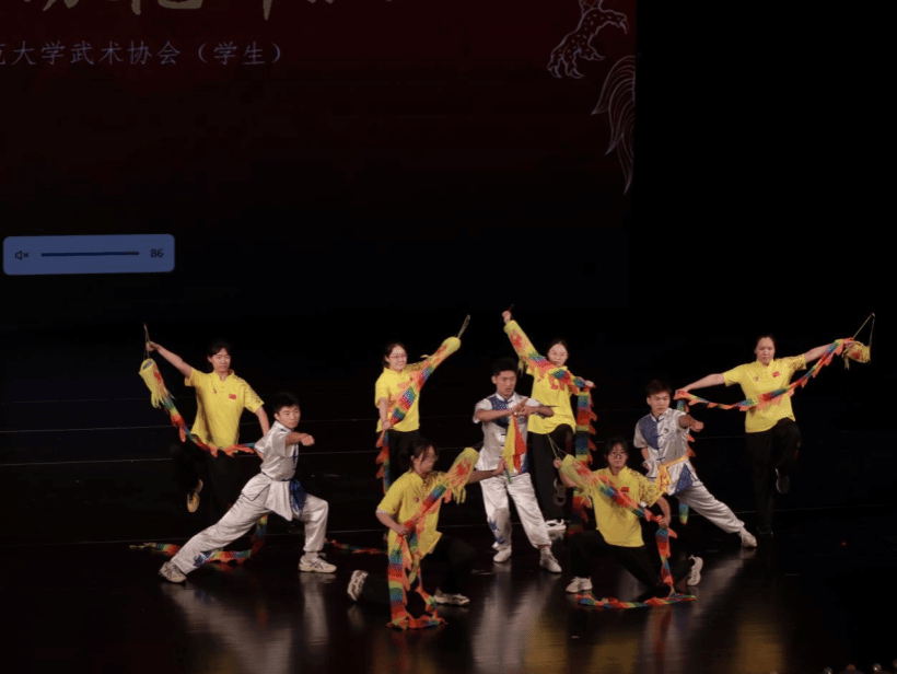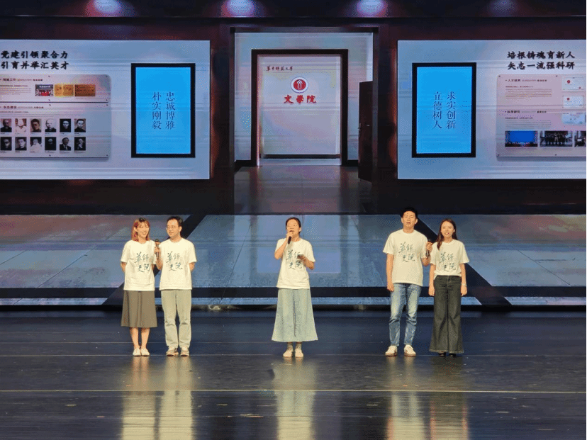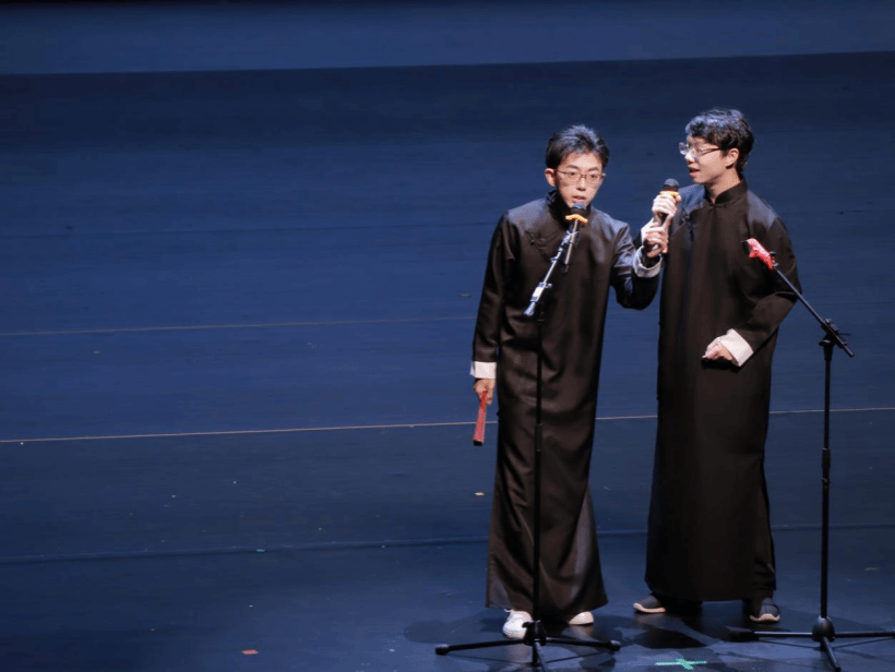 来佳宁、张梦欣的歌曲《天若有情》以双人叠唱的形式展开,此起彼伏的歌声传达了“天若有情天亦老”的深情;武术协会成员的表演《武动乾坤》在蛟龙般的柔美和刚健中引起在场同学们的惊叹;潘可欣、陈知行、董奕好等人的诗朗诵《致中文系》采用各地方言的表达方式展示五湖四海文院学子对文学的热爱。