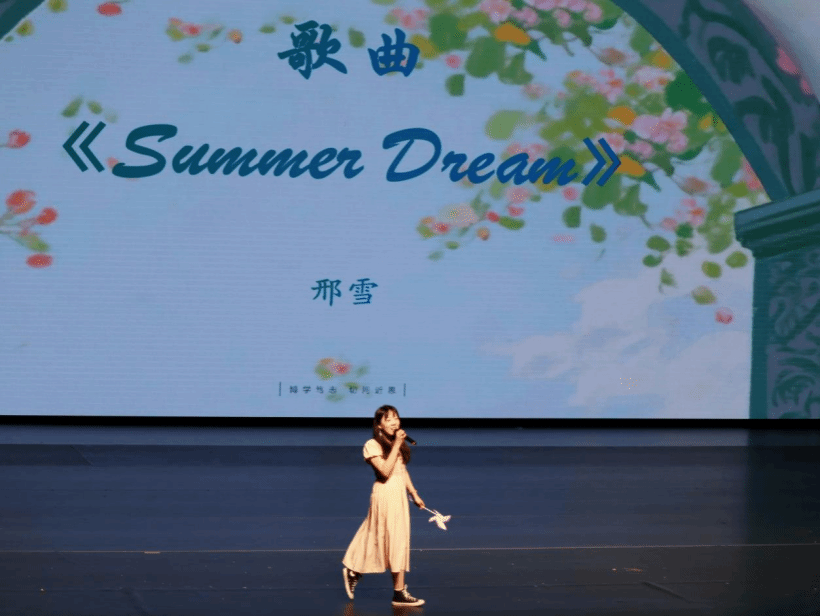 在晚会的第三章“芳草天涯”中,米热迪力·吐尔洪、黄俊语和尤奕杭的歌曲《友情岁月》诉说着独属于桂子山上的友情勋章,表达出未来携手同行、共赴山海的坚定誓言;房忆佳、邹若旻、林澜和罗晓婷的戏曲联唱《梨园芳华·江南情韵》响应着“戏曲进校园”的时代潮流,她们以婉转的曲调,清丽的唱腔让现场观众真切感受到了中华优秀传统文化的魅力;本科2021级优师计划班成员的歌曲《凤凰花开的路口》更是在多声部的演唱中带给我们凤凰花下坚定的誓言和路口分别时美好的祝愿。