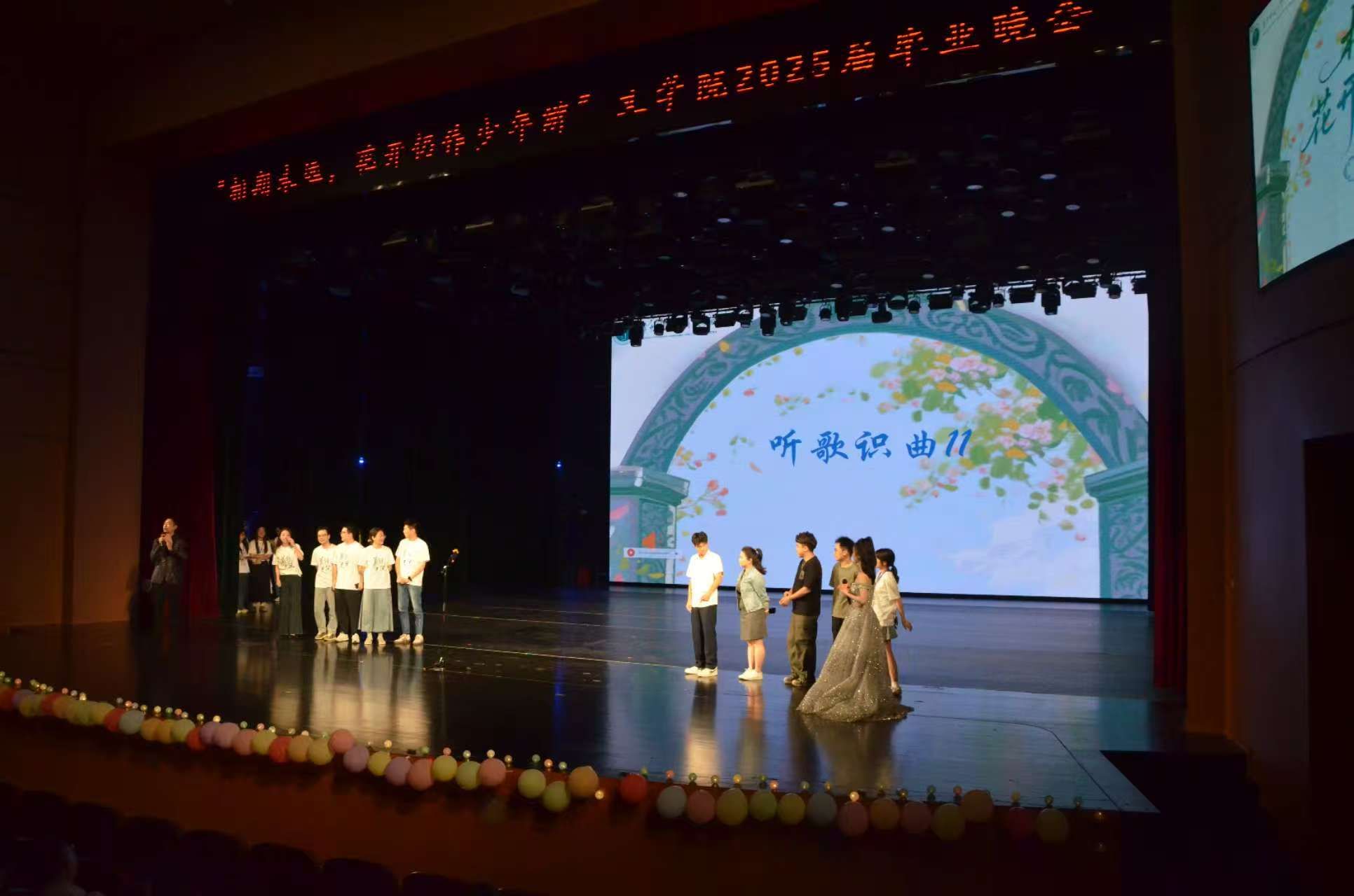 “听歌识曲”和抽奖环节,同学们积极踊跃地站上舞台,对乐曲的熟悉反映的是对生活的热爱。辅导员阵营和同学阵营的“较量”更是在互动中碰撞出浓浓的师生情谊。来自学院领导和老师们的临别寄语令同学们触动良久,一言一语中寄托着满满的回忆和深深的祝福,用心用情照亮每一位即将远行的文院学子。