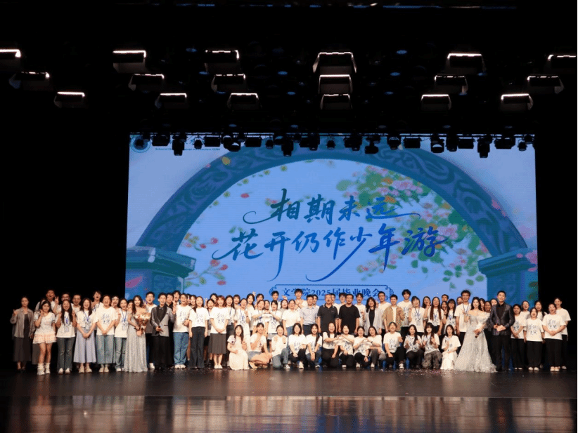 文学院讯(通讯员 罗朝涛 蒋杨钥 卫静雯 岑宛芳 潘可欣)相期未远,花开仍作少年游。6月12日晚,文学院2025届毕业晚会在新大学生活动中心大礼堂举行。文学院党委书记张舜,院长刘云,院党委副书记李红雷、桂文亮,副院长吴述桥,班导师廖继莉、杜鹃、王楚,毕业年级辅导员李筱佳、马骁、舒佳欣、黎书宏、李子祺,2022级辅导员杨心怡、余雪婷,2023级辅导员周旺章、陈怡涵,2024级辅导员袁瑞磷参加晚会,为即将远行的文院学子送去毕业祝福。
