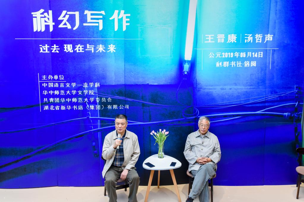 (通讯员:张唯 殷小村 摄影:于玥)5月14日晚,王晋康、汤哲声做客华中师范大学利群书社倍阅书店,开展《科幻写作:过去、现在与未来》讲座,与近百名科幻爱好者进行交流。此次讲座由中国语言文学一流学科、华中师范大学文学院、共青团华中师范大学委员会、湖北新华书店(集团)有限公司主办,华中师范大学摇篮文学社、科幻协会、文学院《桂风》编辑部承办。华中师范大学文学院教授胡亚敏作为特邀嘉宾出席。现场座无虚席,到场学子们反响热烈,奇思妙语解惑,笑声掌声不断。