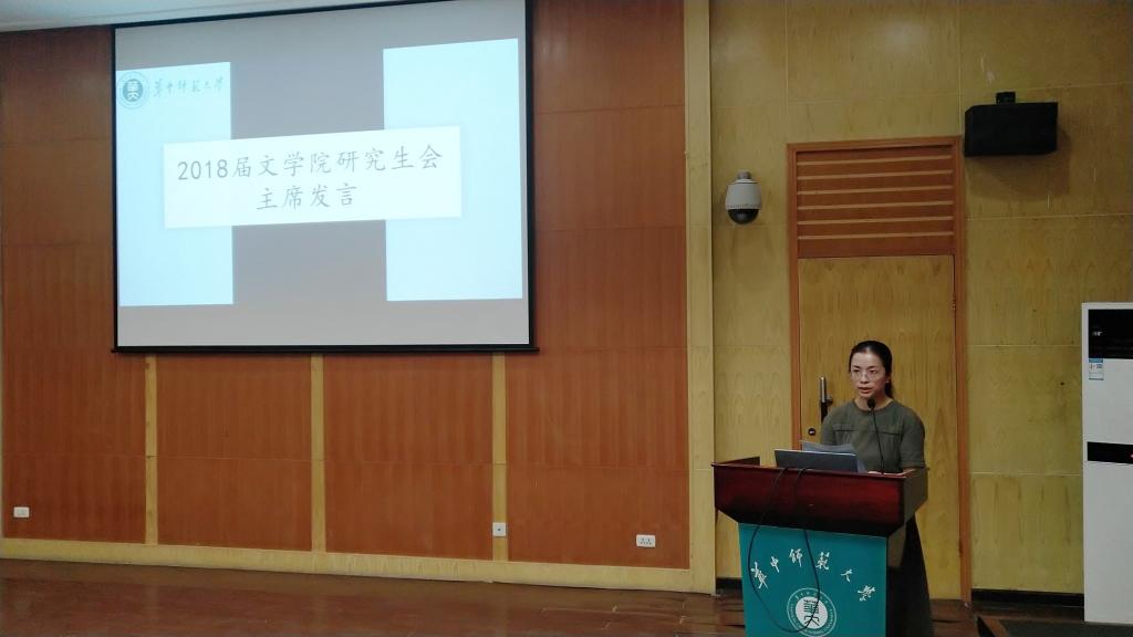 大会伊始,2019届研究生会副主席徐杨阳带大家从学术、文艺、宣传、服务、体育活动五大板块回顾了2018届文学院研究生会大事件。2018届文学院研究生会主席王玉娇对新成员的加入表示热烈的欢迎和感谢,并与大家分享了研究生会的工作经验。